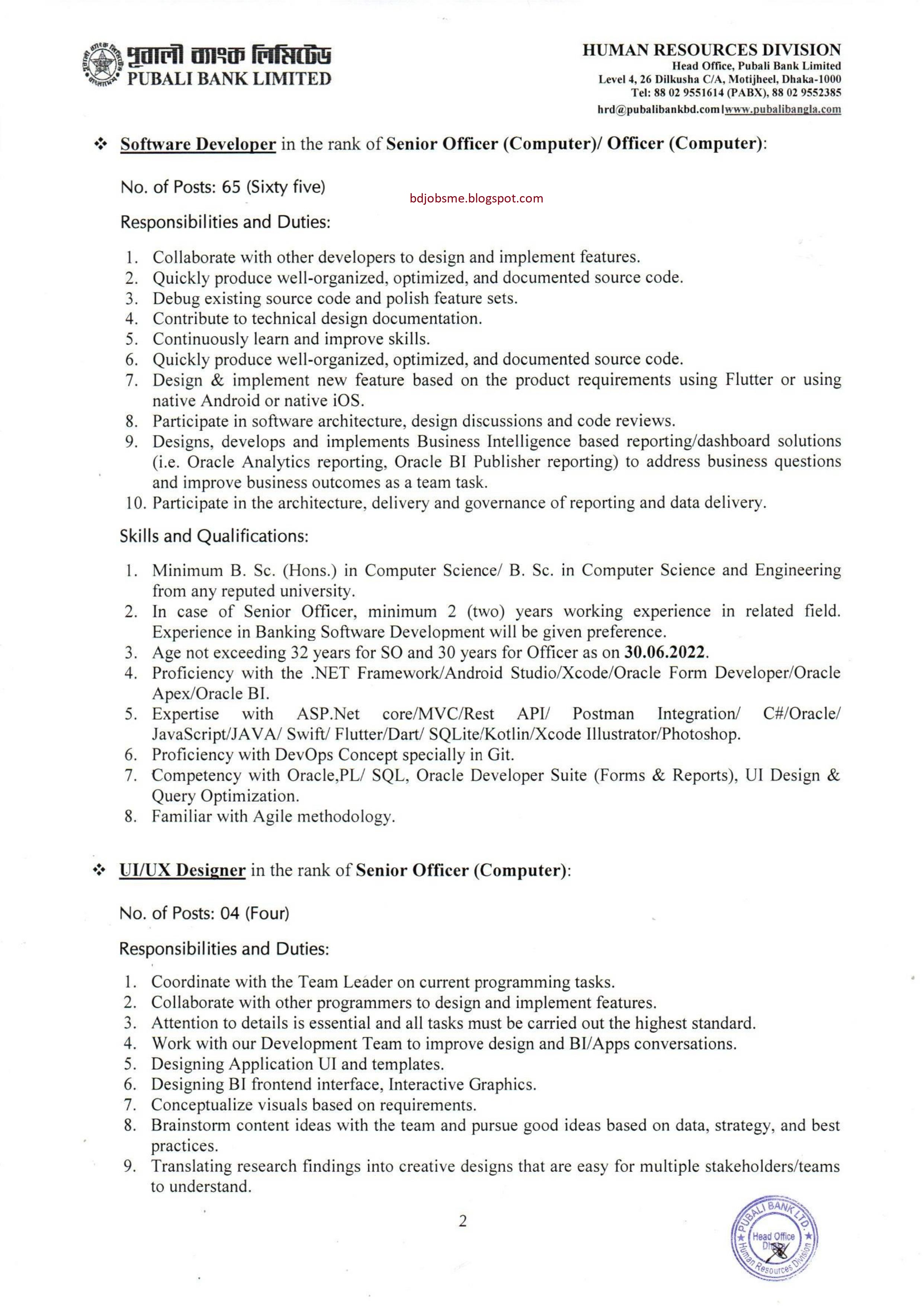 Pubali Bank limited is the largest commercial bank in Bangladesh. With the job opportunities in 490 branches a career with us can take you almost anywhere in Bangladesh. Wherever you come from, wherever you want to go, we can offer you exciting career opportunities across the country. Attracting and developing our next generation of leaders is a key priority of Pubali Bank Limited.